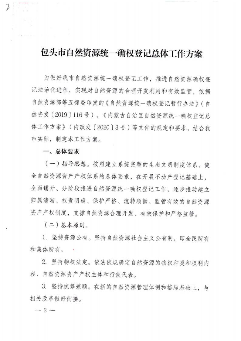 经市政府研究同意,现将《包头市自然资源统一确权登记总体工作方案》印发给你们,请结合实际认真贯彻执行。