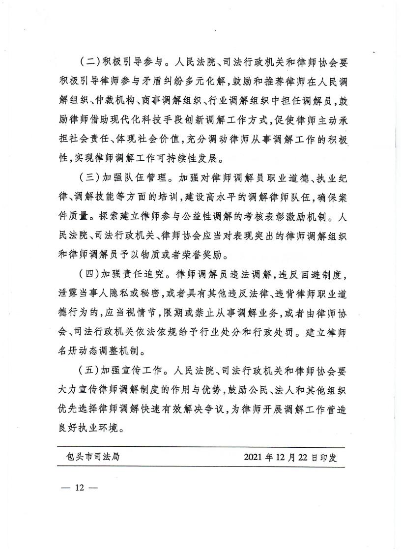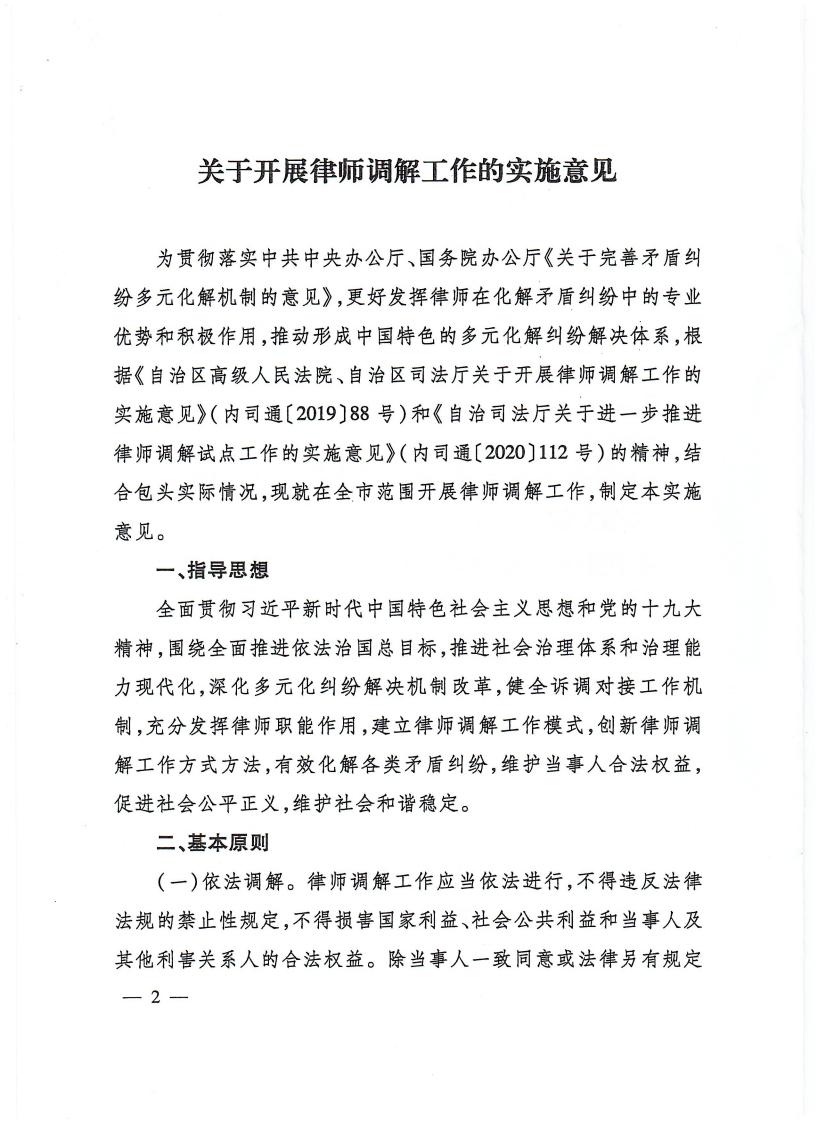 包头市司法局、包头市中级人民法院印发《包头市司法局包头市中级人民法院关于开展律师调解工作的实施意见》的通知