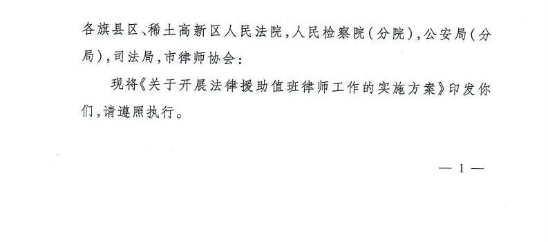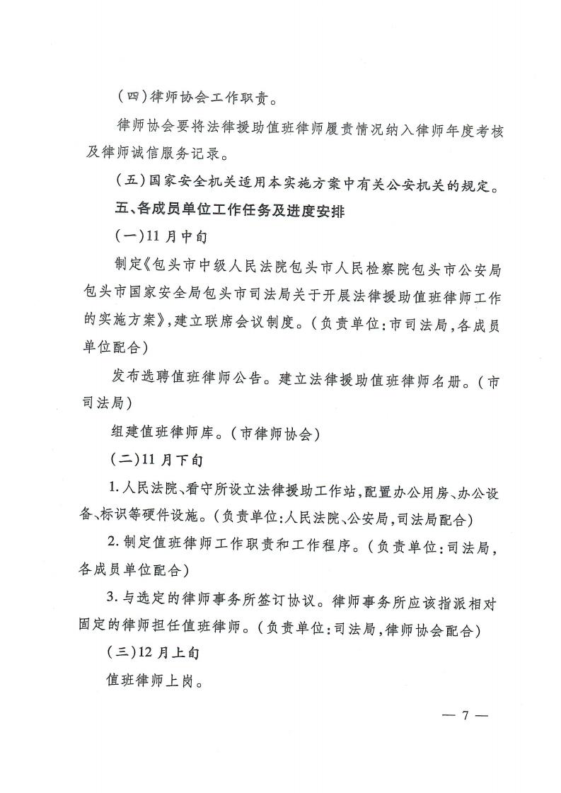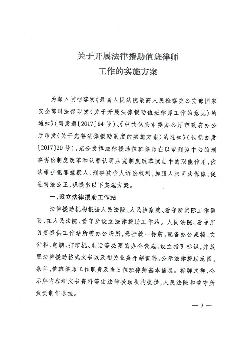 包头市中级人民法院 包头市人民检察院 包头市公安局 包头市国家安全局 包头市司法局印发《关于开展法律援助值班律师工作的实施方案》的通知