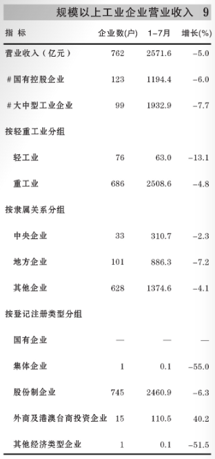 2025年7月包头市规模以上工业企业营业收入