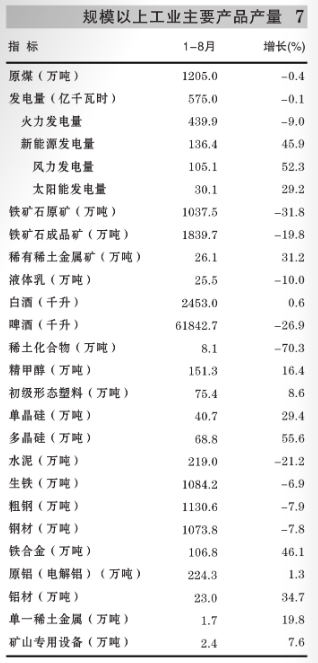 2025年8月包头市规模以上工业主要产品质量