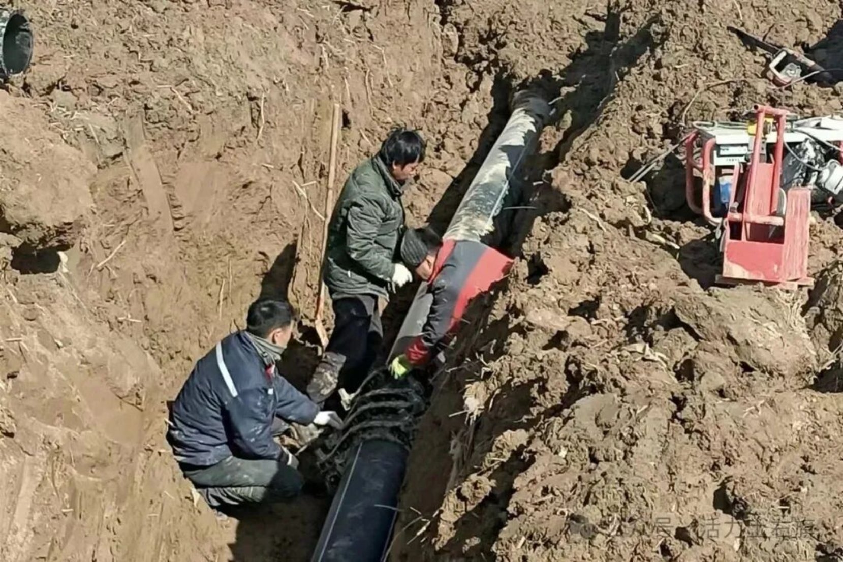 一项民生工程的落地,背后是攻坚克难的实干担当。该工程建设过程中,复杂的施工条件给项目推进带来诸多挑战:项目沿线地形复杂,横跨农田、林地、村庄等多个区域,需精准避让现有电力、通信等管线;近80公里管网敷设、6000余块水表安装及配套设备井施工任务同步推进,工期紧、任务重;冬季施工阶段,地下水位偏高问题更是给现场作业带来极大阻碍。