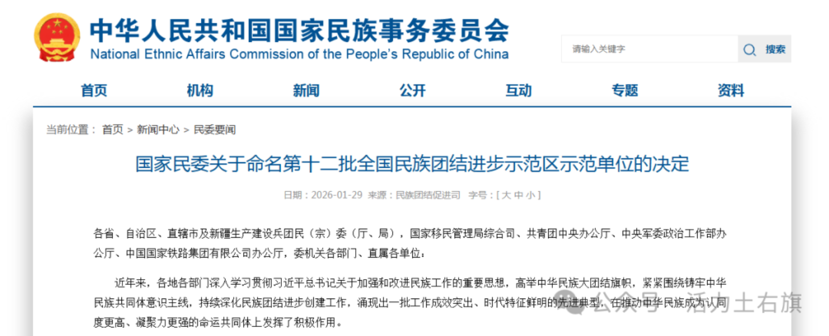近日,国家民委印发《关于命名第十二批全国民族团结进步示范区示范单位的决定》,共命名488个先进典型。内蒙古自治区共有23个地区和单位成功入选,其中包头市土右旗榜上有名,获评第十二批全国民族团结进步示范区示范单位,命名有效期为5年。这是土右旗在民族团结进步事业中获得的又一项国家级荣誉,也标志着当地铸牢中华民族共同体意识工作迈上了新台阶。