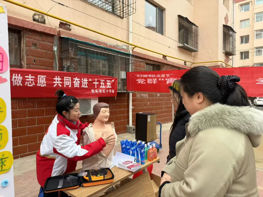 在第63个学雷锋纪念日来临之际,为深入贯彻习近平总书记关于深入开展学雷锋活动的重要指示精神,紧扣“学雷锋、做志愿、共同奋进‘十五五’”主题,包头市红十字会联合包联社区在青山区幸福路6号街坊开展了形式多样、内容丰富的学雷锋志愿服务暨元宵民俗文化活动,把专业救护服务、暖心便民服务与传统节日文化送到居民家门口。