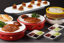 楼外楼的果木烤鸭采用果木炭烤鸭炉烤制的鸭,具有“色、香、味”三绝,烤鸭用枣木,苹果树等果木熏烤制鸭身成枣红色,熏烤时,几十米外飘逸着诱人的香味,配以荷叶饼,葱酱食之,酥香可口,吃后还想。用果木烤,烤出来的味道会很香甜,而且外焦里嫩、色泽光亮,卖相好。