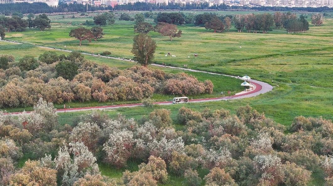 赛汗塔拉城中草原的初秋,是城市中心的自然诗画。辽阔草甸染着浅黄新绿,树木错落成天然笔触,小径蜿蜒如丝带,串起都市与原野,在这里,既能触摸城市的烟火余温,又能拥抱草原的自在风。