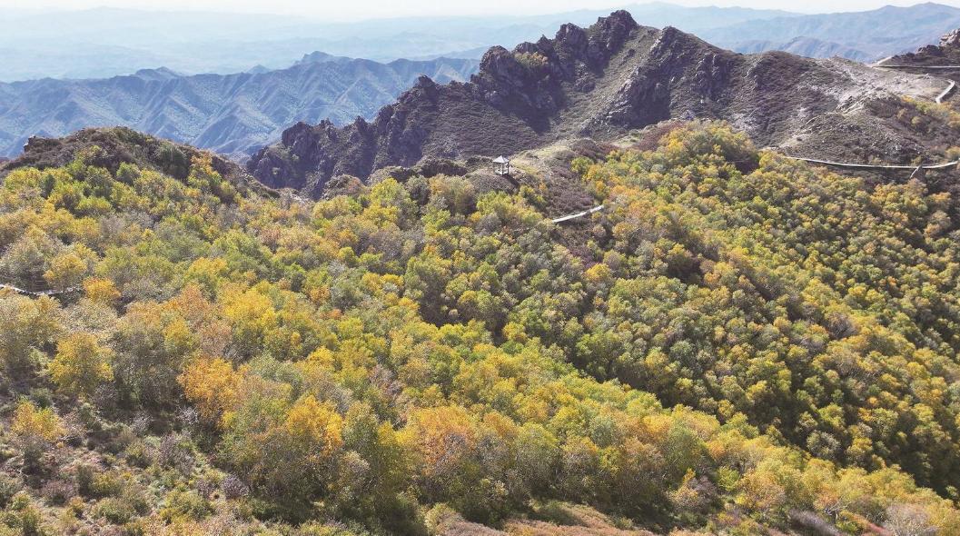 此刻,风掠过6000余亩的次生林,带着大青山的清冽,白桦树叶簌簌飘落,铺满栈道,每一步都似踩在时光的琴弦上。而柠条则在翠绿梢头点缀着些浅黄,与远处黛青山脊交织,如水墨画卷。