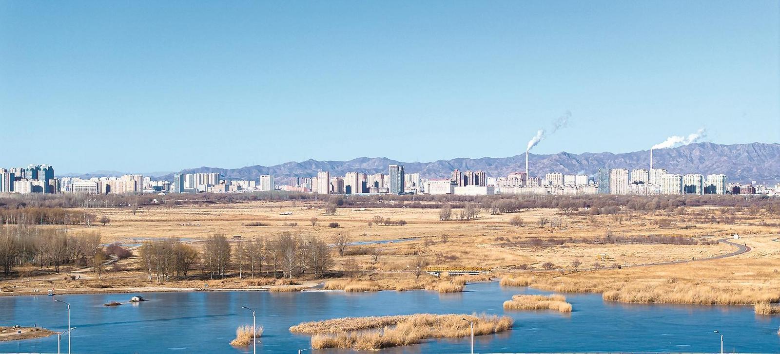 近日,我市天空澄澈如洗,赛汗塔拉城中草原封冻的人工湖倒映着苍穹的湛蓝,与周围的金色草原相映成趣,远处的城市建筑错落有致,阴山山脉轮廓清晰,尽显冬日鹿城的灵秀与雄浑。