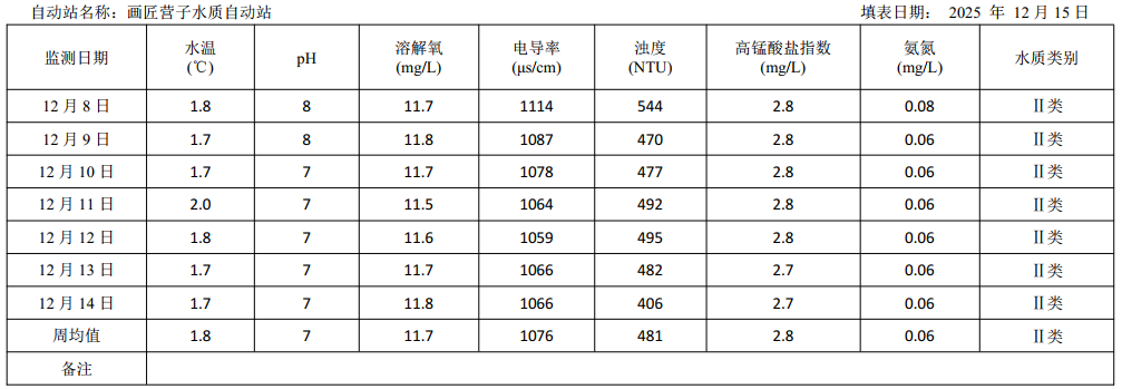 黄河流域重点断面水质自动监测周报(2025年第50期)