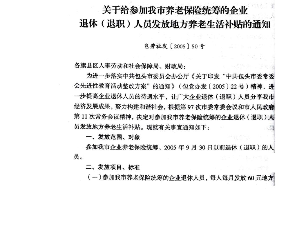 关于给参加我市养老保险统筹的企业退休(退职)人员发放地方养老生活补贴的通知