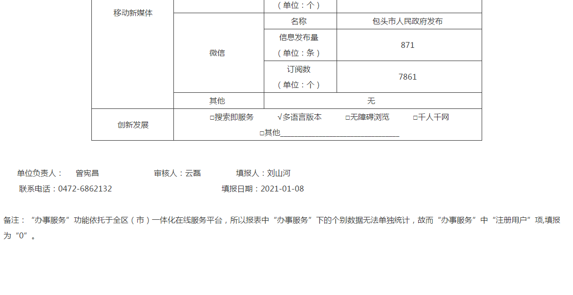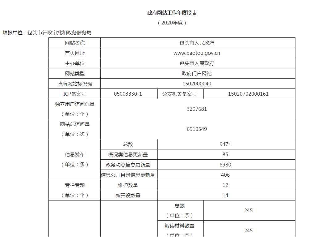 包头市人民政府门户网站2020年工作年度报表