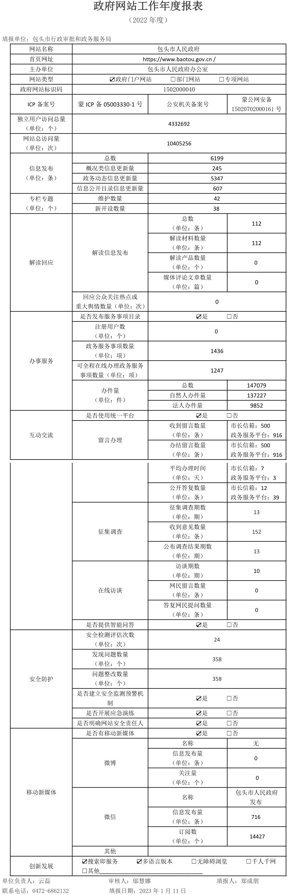 包头市人民政府门户网站2022年工作年度报表