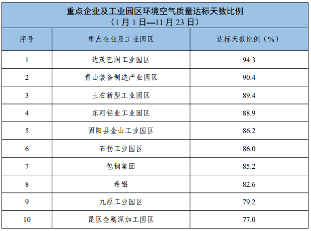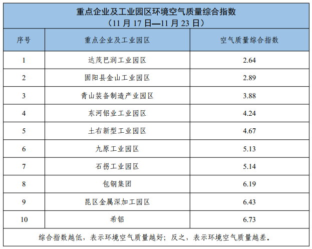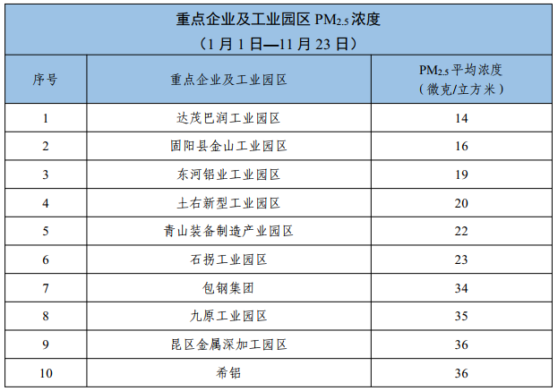 包头市重点企业及工业园区环境空气质量公示