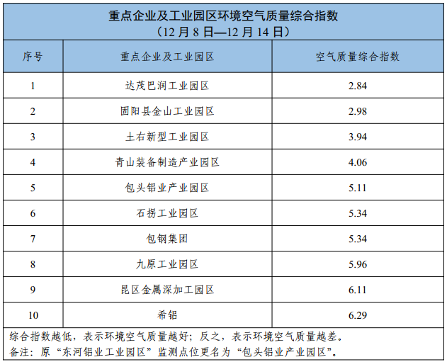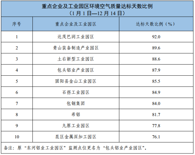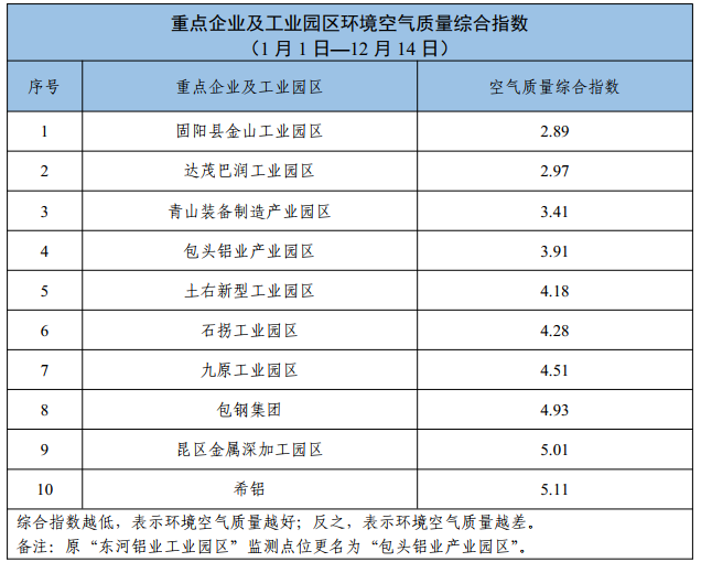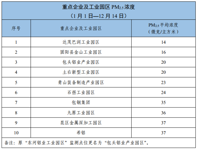 包头市各旗县区、重点企业及工业园区环境空气质量公示(2025年1月1日—2025年12月14日)