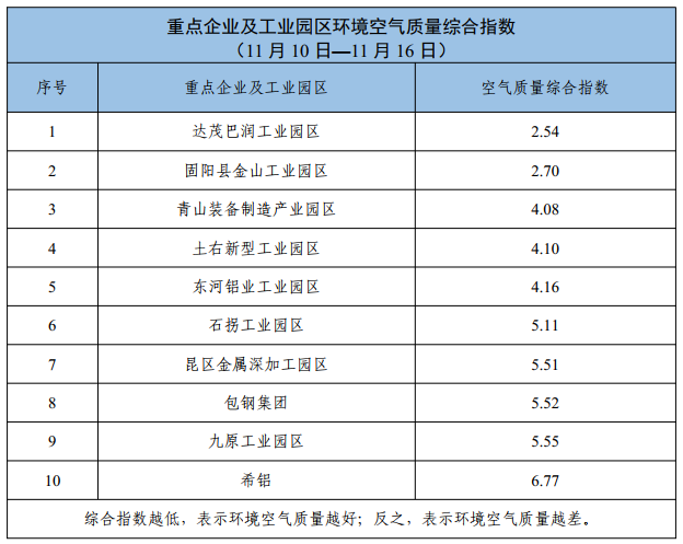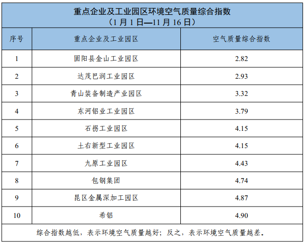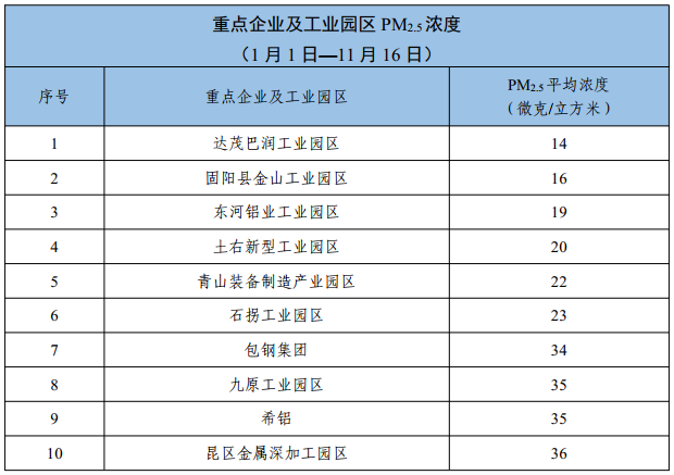 包头市重点企业及工业园区环境空气质量公示